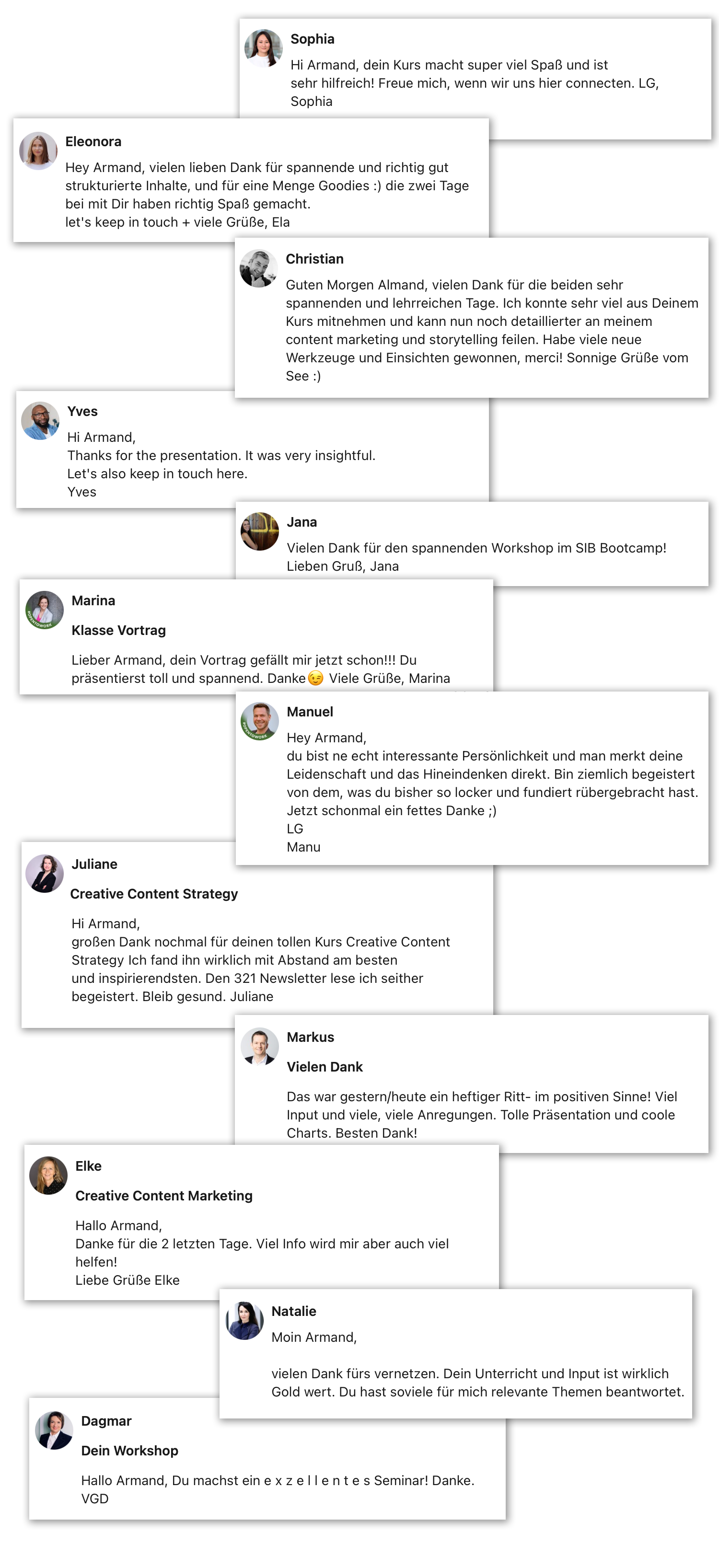 "I wanted to thank Armand for his work and such an inspiring and incredibly useful workshop! The whole team was super happy and we feel very motivated."